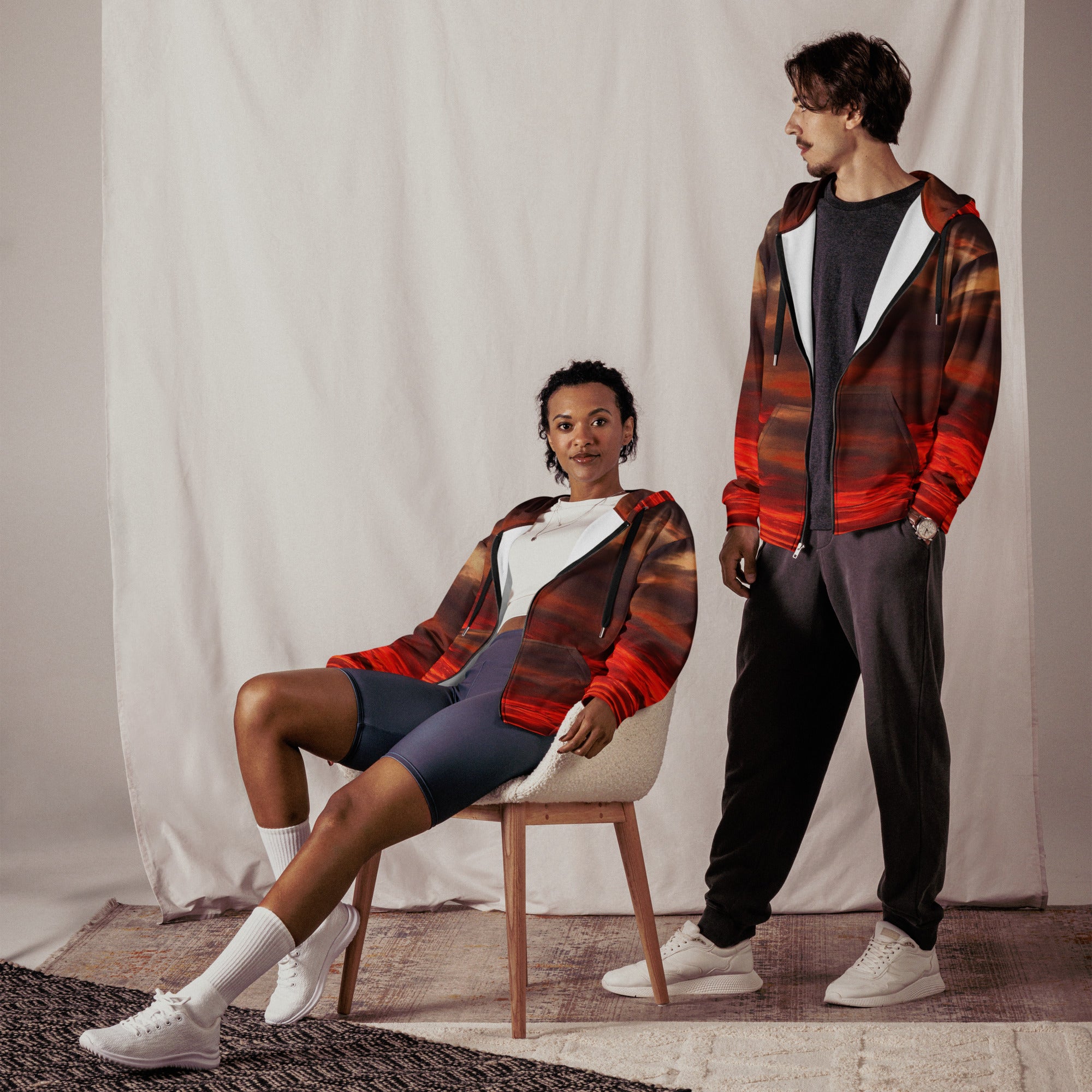 Meet the zip hoodie — a must-have staple addition to your wardrobe. Customized with an original Lesley Villarreal photograph and crafted from 95% recycled polyester, it combines sustainability with unique style. Your new favorite unisex hoodie offers a relaxed fit, drop shoulders, and a supremely cozy softness inside and out. It’s designed to last, which is lucky for us because we never want to take it off!